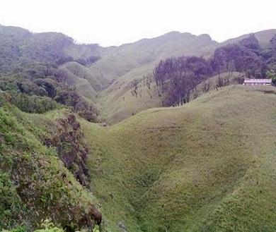 Rücken einiger Berge, die voller dichter Wälder sind.